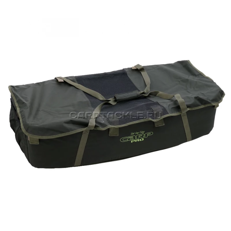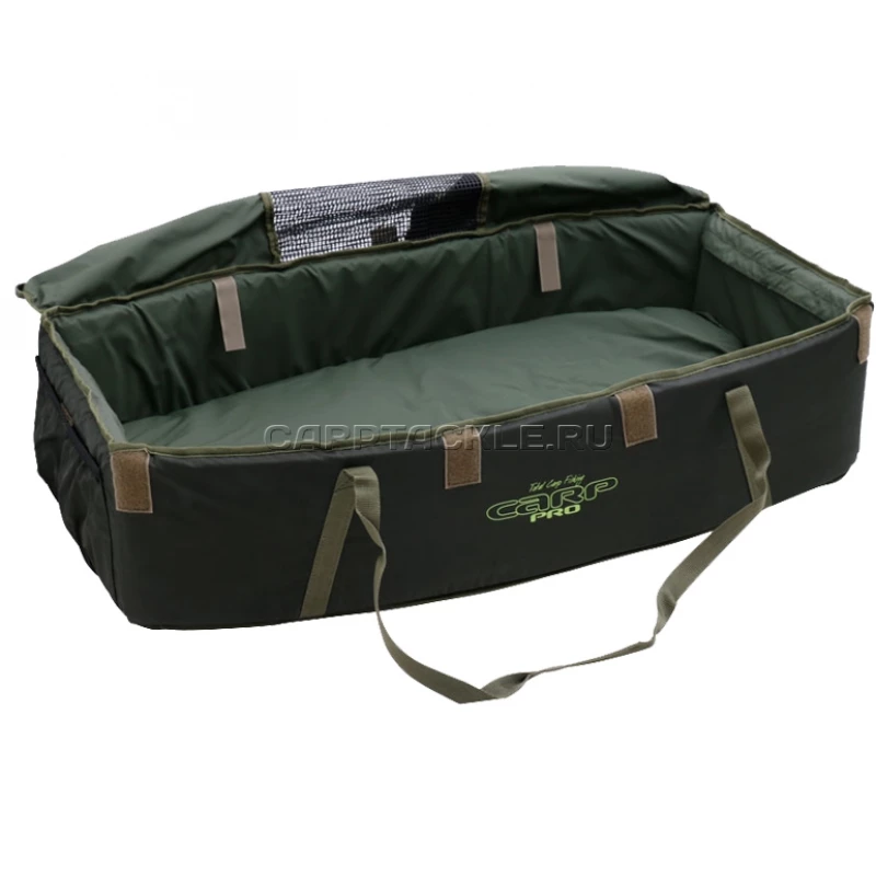 Карповый мат премиум-класса. Он изготовлен из прочной водонепроницаемой ткани. В стенках имеются жесткие вставки, благодаря чему мат всегда держит форму и не складывается, а поверх них мягкие – чтобы полностью исключить повреждения карпа. Коврик-вкладыш имеет мягкое наполнение большой толщины. Торцевые панели откидной конструкции фиксируются липучками. Благодаря такому решению мат легко помещается в компактный чехол из водонепроницаемой ткани, снабженный плечевым ремнем для переноски. Прорезиненная, не впитывающая воду и запахи сетка в дне не позволяет воде скапливаться внутри мата. Его легко можно заглубить и вытащить из воды, не переворачивая. Для того чтобы успокоить карпа для беспроблемной фотосессии, а также для его безопасной переноски к водоему предусмотрена мягкая крышка с сетчатой вставкой. Очень важно, что она фиксируется и открывается в одно движение, поскольку для ее фиксации использованы липучки. Поверхность ткани, которая используется для внутреннего пространства мата, полностью безопасна для карпа, эта ткань легко отмывается от слизи и быстро сохнет. Сбоку предусмотрен специальный раскладной коврик, предназначенный для того, чтобы рыболов мог встать на колени во время манипуляций с рыбой и при этом не запачкать одежду. Он с одной стороны прикреплен к мату и в сложенном состоянии фиксируется липучкой. Для переноски мата служат прочные ручки. Как видите, предусмотрено все, даже больше, чем вы могли ожидать!