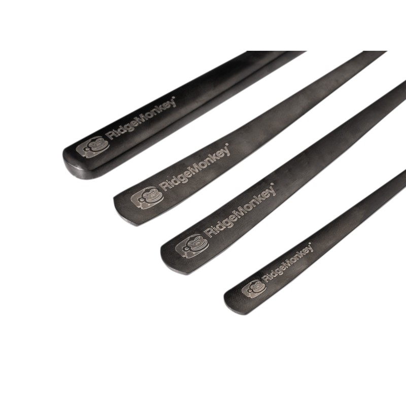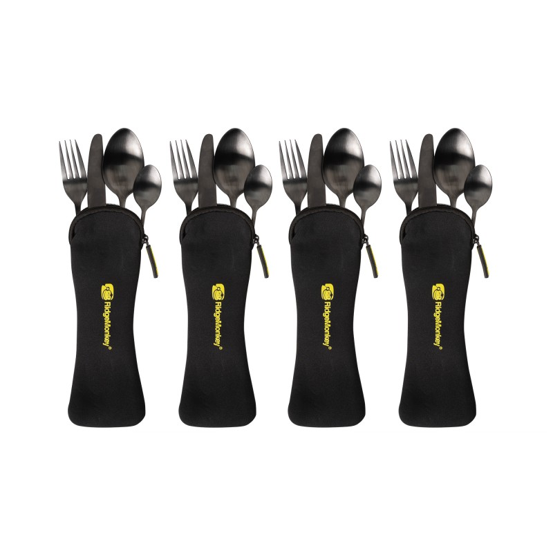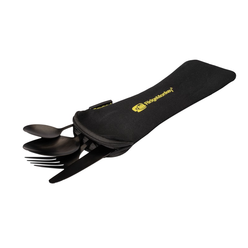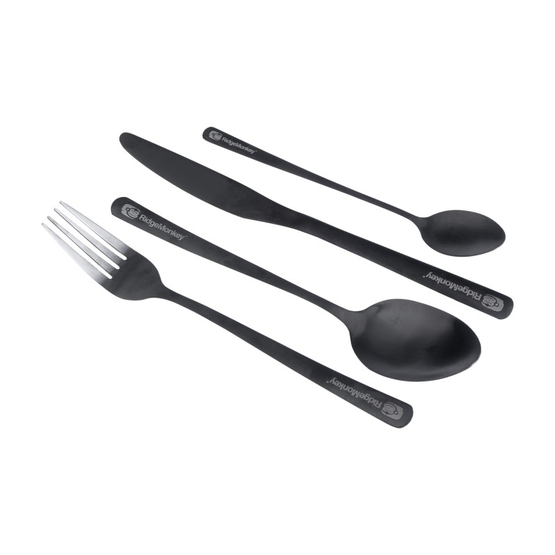 Набор столовых приборов «DLX Cutlery Set» от компании «Ridge Monkey» состоит из ножа, вилки, ложки и чайной ложки с удлиненной ручкой, при этом каждый из приборов изготовлен из цельного куска прочной нержавеющей стали.