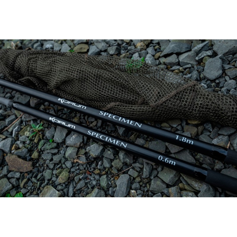 Подсачек «Specimen Net Combo» можно использовать в стандартной длине 1.8 метра, либо же в длине 2.4 метра с удлиняющей надставкой. Подсачек имеет очень мягкую, безопасную для рыбы и быстро сохнущую сетку оливкового цвета. Металлический блок крепления усов обеспечивает прочность, в то время как заштивтованная резьба гарантирует надежность. Диаметр подсачека в 36 дюймов (91.5 сантиметр) идеально подходит для охоты за крупной трофейной рыбой.