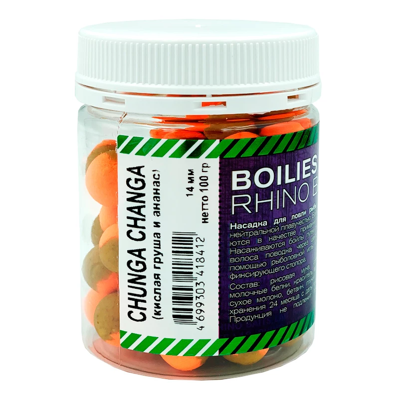 Бойлы нейтральной плавучести Rhino Baits Chunga Changa (кислая груша и ананас), 14 мм, банка 100 грамм.