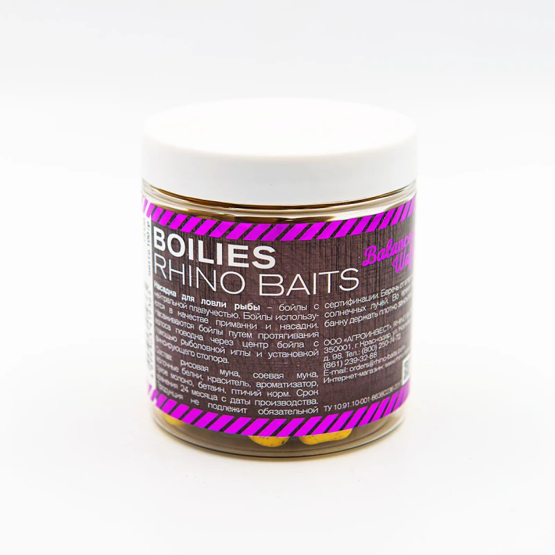 Насадочные бойлы нейтральной плавучести (сбалансированные бойлы) от компании Rhino Baits (Рино Бэйтс), являются специальным видом насадочных бойлов, которые в последние годы набирают все большую популярность у рыболовов, потому, что показывают очень хорошие результаты при ловле карпа, особенно при ловле на мягком дне, иле и при ловле в периоды слабой активности рыбы, в холодной воде — ранней весной или поздней осенью. Нейтральная плавучесть бойла, существенно облегчает его, и тем самым способствует быстрому и легкому всасыванию вашей насадки рыбой. Эти бойлы от Rhino Baits (Рино Бэйтс), также, успешно применяют и при ловле летом, в тёплой воде, и особенно, в условиях жёсткого рыболовного прессинга, на водоёмах с большим количеством рыболовов и на рыболовных соревнованиях, когда рыба особенно осторожно берёт вашу насадку. Использование нескольких цветов в бойлах нейтральной плавучести вделает их более заметными в различных условиях ловли, запахи и вкусы бойлов являются составными и включают в себя специально собранные миксы ароматизаторов и вкусовых добавок. Бойлы серии Balance от Rhino Baits (Рино Бэйтс), могут иметь как положительную, так и отрицательную плавучесть, для более широкой возможности их применения и различных вариантов презентации вашей насадки