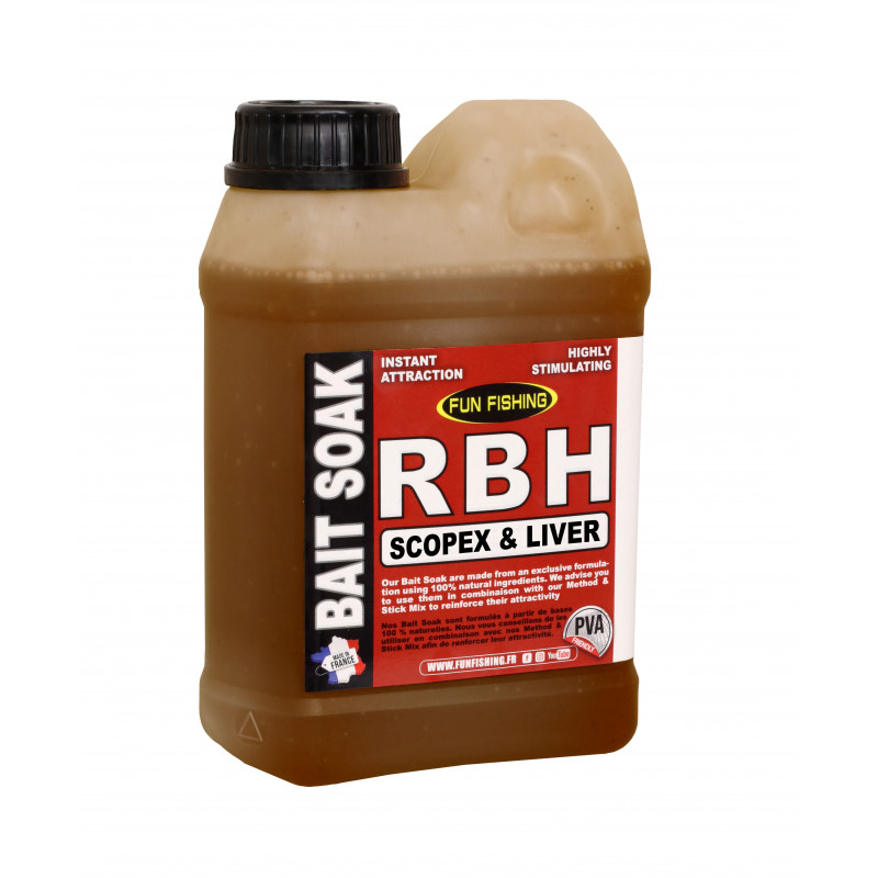Ликвиды «Bait Soak» от компании «Fun Fishing» представляют собой очень привлекательную жидкую добавку, которая на все 100% состоит из натуральных ингредиентов. Эти ликвиды можно использовать в сочетании с нашими стик-миксами и метод-миксами, зерновыми прикормками и т.д. Поскольку эти ликвиды не растворяют ПВА-материалы, Вы легко сможете замачивать Ваши стики в самом ликвиде.