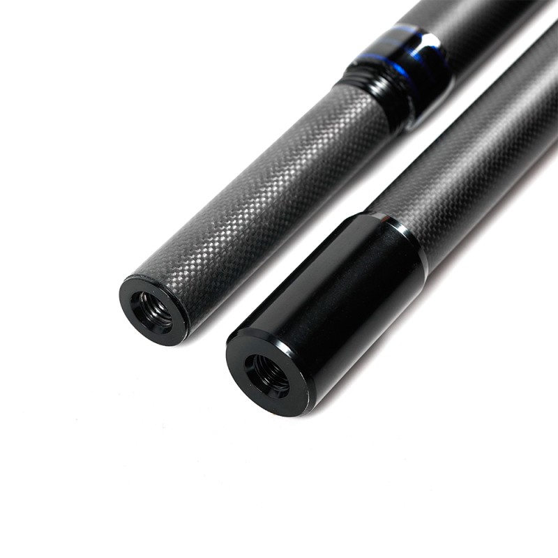 Надёжное шпиготное соединение убережёт от поломок в стыке. Коннектор с дюймовой резьбой 3/8 к голове подсака в длинной части, резьбовое соединение 3/8 в короткой части, а также задняя заглушка метровой части выполнены из нержавеющей стали.