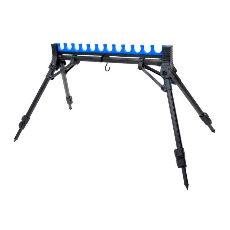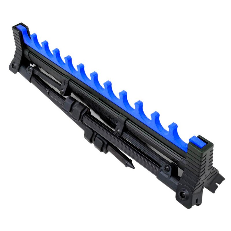 Подставка для запасных удилищ или китов штекера. Оснащена мягкой гребенкой с 12 выемками для удилищ. Обладает высокой прочностью и имеет складную конструкцию, обеспечивающую быстрый монтаж и демонтаж. Имеет исключительно устойчивую конструкцию — телескопическая конструкция ног позволяет менять высоту и приспосабливаться к неровному рельефу. Предусмотрен крючок для подвешивания груза при ловле во время сильного ветра. Мягкая вставка из EVA защищает материал удилищ от повреждения. Гребенка быстро собирается и разбирается, отличается компактностью при транспортировке. Поставляется в чехле из плотной ткани.